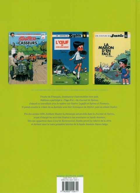 Le meilleur des aventures de Sophie, la petite camarade de Starter ! .. La première BD dont l'héroïne est une fi lle, avant Natacha et Yoko Tsuno. .. Ce recueil réunit L'oeuf de Karamazout ainsi que deux aventures de Starter et Sophie : Starter contre les casseurs et La maison d'en face. .. De la BD automobile chère à Jidéhem. .. Période 1961 - 1964. .. On retrouve Starter, le chroniqueur automobile fétiche du Journal de Spirou.