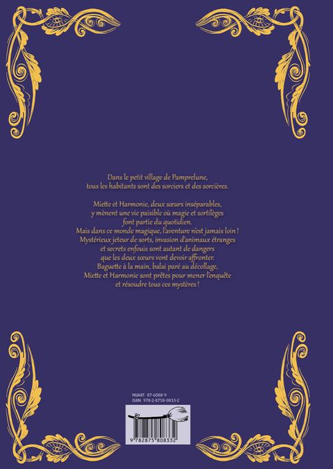 Dans le petit village de Pamprelune, tous les habitants sont des sorciers et des sorcières. Miette et Harmonie, deux soeurs inséparables, y mènent une vie paisible où magie et sortilèges font partie du quotidien. Mais dans ce monde magique, l'aventure n'est jamais loin! Mystérieux jeteur de sorts, invasion d'animaux étranges et secrets enfouis sont autant de dangers que les deux soeurs vont devoir affronter. Baguette à la main, balai paré au décollage, Miette et Harmonie sont prêtes pour mener l'enquête et résoudre tous ces mystères!
