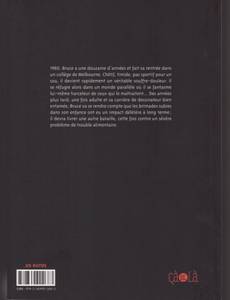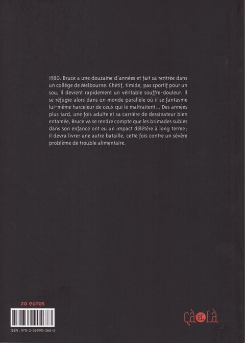 1980, Bruce a une douzaine d'années et il fait sa rentrée dans un collège de Melbourne. Chétif, timide, pas sportif pour un sou, il est la risée de la plupart des autres enfants. Lui qui semble ne pas être attiré par les filles - une hérésie - devient rapidement un véritable souffre-douleur. Bruce se réfugie alors dans un monde parallèle où il assouvit ses pensées morbides de vengeance et où il se fantasme lui-même harceleur de ceux qui le maltraitent. Cette situation va durer jusqu'à ses 18 ans... Ce n'est qu'à l'entrée à l'université que Bruce commence à mettre en place un mécanisme de défense et qu'il parvient, grâce à l'humour et un esprit de transgression très poussé, à repousser les jeunes de son âge qui lui cherchent des noises. Mais des années plus tard, une fois adulte et sa carrière de dessinateur bien entamée, Bruce va se rendre compte que les brimades subies dans son enfance auront un impact délétère à long terme et il devra se débattre avec un problème d'anorexie qui mettra sa vie en danger. Avec beaucoup d'honnête et de transparence, Bruce Mutard se livre à un véritable exercice d'auto analyse, et revient sur cette enfance dévastée. Il livre un récit dur et émouvant sur le harcèlement scolaire et ses répercussions sur la psyché de ceux qui en ont souffert.