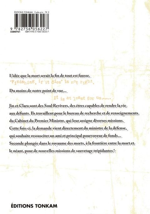 Par l'entremise de Madame Ando, du ministère de l'information, des demandes variées parviennent à Jin et à Kurara, « Soul Revivers » capables de faire revivre les morts. Cette fois, la demande émane du Ministre de la Défense qui leur demande de faire revivre son meilleur ami...