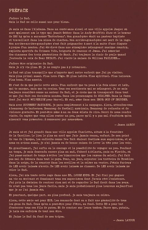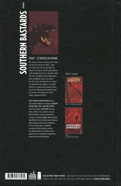 Je lis Southern Bastard après Scalped, alors évidemment je suis un peu déçu. Les personnages sont moins travaillés, moins profond de même que le scénario. Et puis la manière dont le personnage principal obtient son gourdin n'est pas très crédible. Et comme c'est le signe qui lui fait décidé de (...) Voir le commentaire