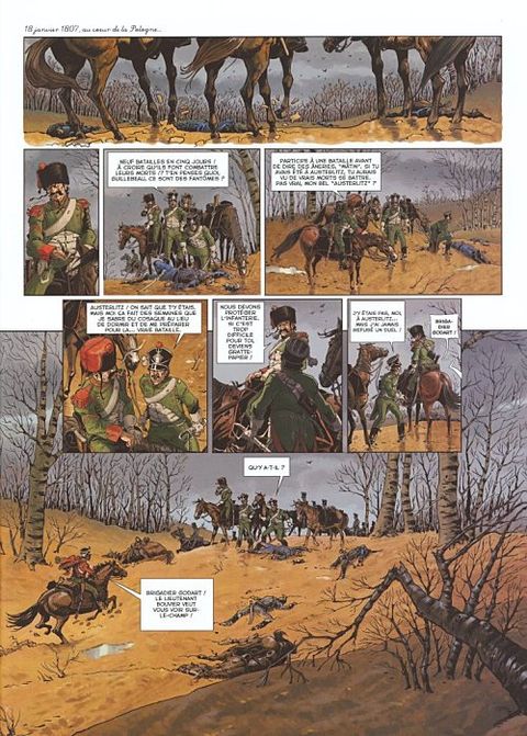 Après les victoires d'Austerlitz, de Iéna et d'Auerstaëdt, la Grande Armée traverse la Pologne pour prendre position sur les terres russes. Tension et rivalités animent le gros des troupes. Entre la désertion d'un officier et la mort suspecte du cheval d'un vétéran, le sort semble s'acharner sur la Compagnie d'élite du 2e Chasseur à cheval. À quelques jours d'une bataille capitale, le moral est au plus bas...