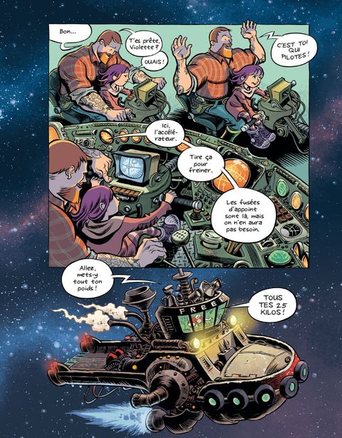 🧔Chronique complète sur : https://www.mtebc.fr/space-boulettes-craig-thompson/ Toutes nos chroniques sur : https://www.mtebc.fr/ 🖊Violette est une jeune fille radieuse qui rêve d'accompagner son père dans ses missions de bûcheron de l'espace. Mais quand celui-ci disparaît lors d'une opération secrète, la jeune fille se lance à sa recherche, aidée par deux étranges compagnons (...) Voir le commentaire
