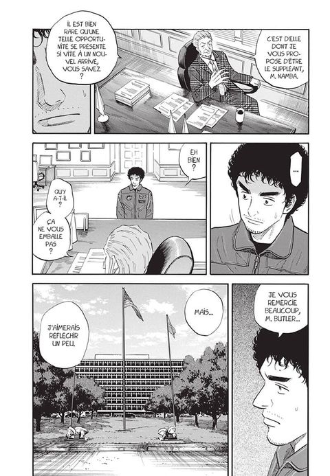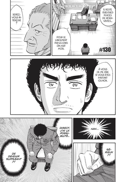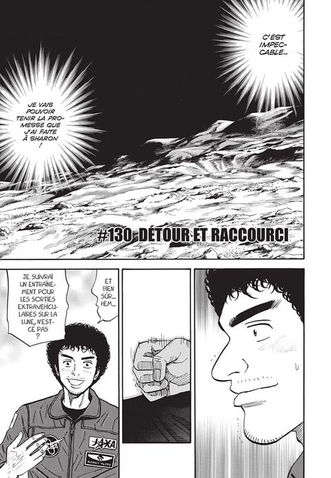 Mutta se voit offrir une place de suppléant pour une mission à bord de l'ISS, mais il décline l'offre pour des raisons personnelles. Le voici donc affecté à un poste d'ingénieur en charge des équipements nécessaires aux activités sur la base lunaire. Sa déception est de courte de durée, faisant appel à son inventivité habituelle, il transforme rapidement cette expérience en un coup gagnant. Dans le même temps, Hibito, traumatisé par son accident, fait face à ses démons intérieurs...