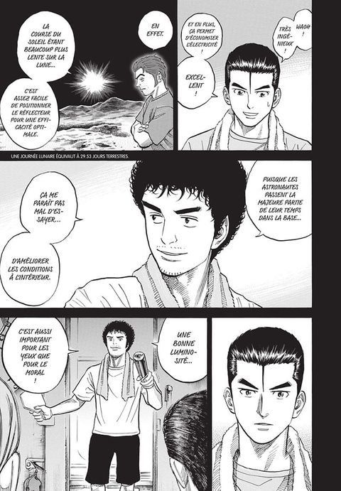 Leur simulation NEEMO enfin achevée, Mutta et Kenji ne tarderont pas à être fixés sur leur sort. Ils doivent bientôt entamer leur prochain entraînement, mais seul l'un d'entre eux sera sélectionné pour la Lune. De son côté, Hibito surmonte peu à peu son trouble panique. Le voilà prêt à passer un test qui déterminera si son retour est, oui ou non, possible. Et à sa surprise, son meilleur conseiller se révèle être une personne particulièrement proche de lui...