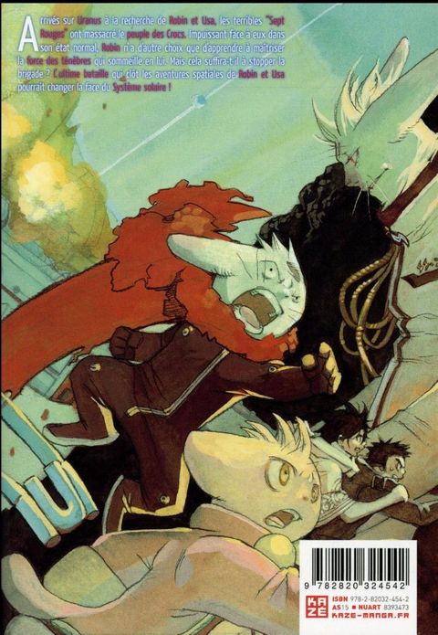 Les “Sept Rouges”, l'élite des combattants de l’armée de SOL, mais aussi les plus fous, ont dévoilé leurs vrais visages et se sont mis en chasse. Pire, le capitaine Obuto leur a laissé carte blanche avec pour unique consigne de ramener le Fils des Étoiles “vivant”. Pendant ce temps, Robin et Usa atteignent Uranus, seule planète du système solaire à s'opposer à SOL, espérant y trouver refuge. Aux côtés du Peuple des Crocs, seront-ils de taille à faire face aux terribles Sept Rouges et à leur nouvelle acolyte, Momo ?