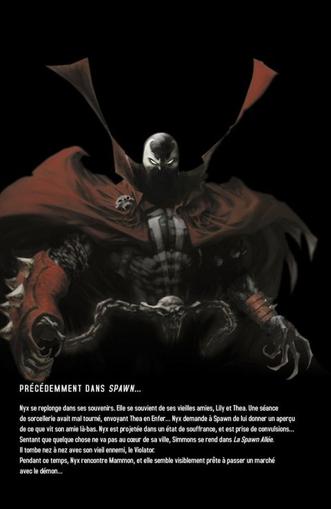 Spawn a retrouvé la piste du Violator, vieil ennemi qui nourrit de funestes projets à son encontre et a gagné le premier round. Al Simmons est aidé par Nyx, une sorcière Wicca dont les objectifs ne sont pas aussi clairs qu'elle veut bien lui laisser croire. Elle finit d'ailleurs par lui dérober les pouvoirs du Hellspawn, afin de se rendre aux Enfers pour y délivrer une âme. En chemin, elle rencontre le Rédempteur.