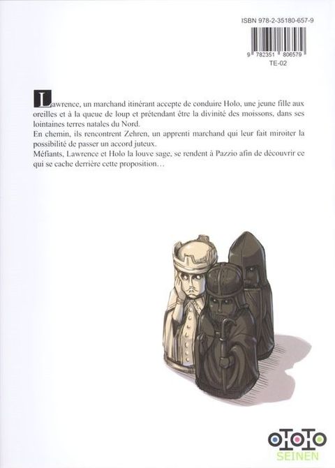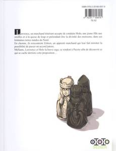 Lawrence, un marchand itinérant accepte de conduire Holo, une jeune fille aux oreilles et à la queue de loup et prétendant être la divinité des moissons, dans ses lointaines terres natales du Nord. En chemin, ils rencontrent Zehren, un apprenti marchand qui leur fait miroiter la possibilité de passer un accord juteux. Méfiants, Lawrence et Holo la louve sage, se rendent à Pazzio afin de découvrir ce qui se cache derrière cette proposition…