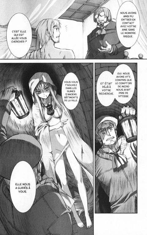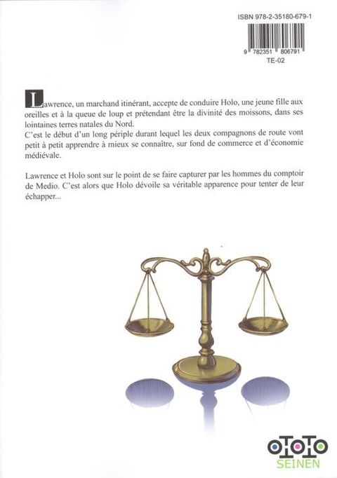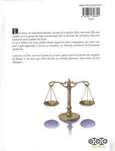 Lawrence, un marchand itinérant accepte de conduire Holo, une jeune fille aux oreilles et à la queue de loup et prétendant être la divinité des moissons, dans ses lointaines terres natales du Nord. C'est le début d'un long périple durant lequel les deux compagnons de route vont petit à petit apprendre à mieux se connaître, sur fond de commerce et d'économie médiévale. Lawrence et Holo sont sur le point de se faire capturer par les hommes du comptoir de Medio. C'est alors que Holo dévoile sa véritable apparence pour tenter de leur échapper...