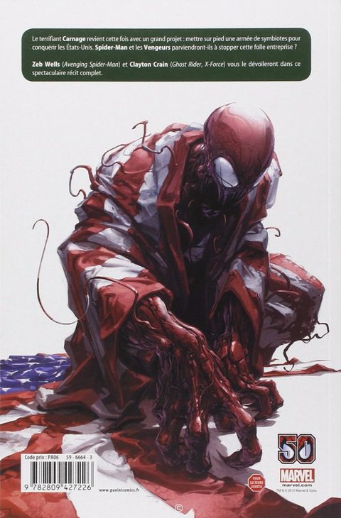 Au début de l'année, Panini Comics éditait le 100% Marvel : Carnage. Fort du succès de ce premier opus, nous vous présentons la suite dans cet album de 184 pages, dans lequel Zeb Wells (Amazing Spider-Man) et Clayton Crain (Ghost Rider) s'amusent à tourmenter Spider-Man. Le Tisseur se retrouve seul dans sa traque au terrible symbiote. En effet, les Vengeurs, surmenage pour Spider-Man en perspective qui lui prêtaient main forte, sont passés sous le contrôle de Carnage !