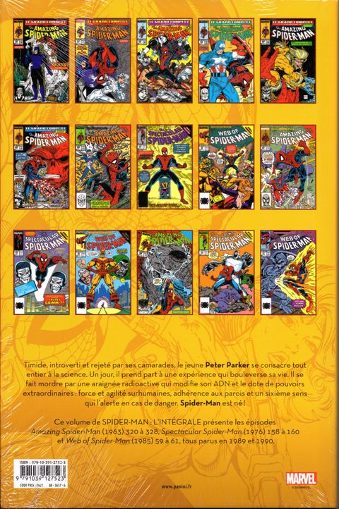 Impliqué dans une intrigue digne d'un James Bond, Spider-Man sort de sa zone de confort ! Peut-être qu'avec un coup de main de Captain America, ça irait mieux ? Pour en rajouter un peu plus, les vilains de l'univers Marvel s'unissent afin d'échanger leurs ennemis et vaincre les héros une fois pour toutes ! Spider-Man se voit alors investi de nouveaux pouvoirs extraordinaires ! Ce nouveau volume de L'INTÉGRALE conclut l'ère Todd McFarlane (le génial créateur de Spawn) pour enchaîner directement sur l'ère Erik Larsen (le génial créateur de Savage Dragon) ! Les années 90 sont bel et bien là, dans un album où Spidey se voit en plus investi de pouvoirs cosmiques !