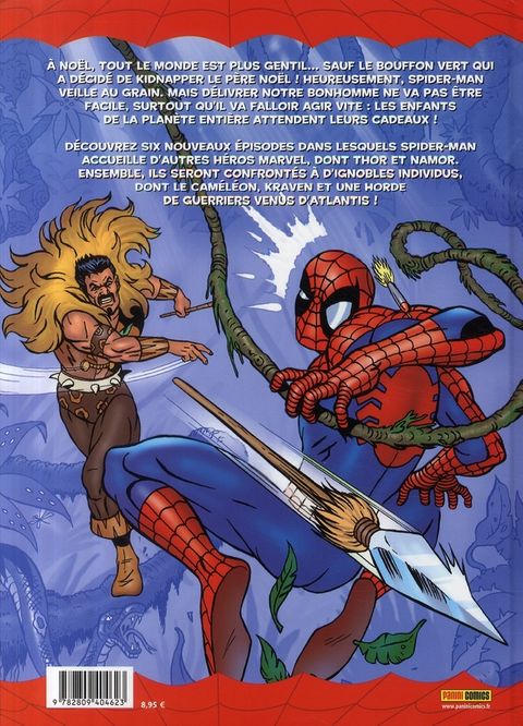 A noël, tout le monde est plus gentil. Sauf le bouffon vert qui a décidé de kidnapper le père noël! heureusement, spider man, veille au grain. mais délivrer notre bonhomme ne va pas être facile, surtout qu'il va falloir agir vite: les enfants de la planète entière attendent leurs cadeaux! découvrez six nouveaux épisodes dans lesquels spider man accueille d'autres héros marvel, dont thor et namor. ensemble, ils seront confrontés à d'ignobles individus, dont le caméléon, kraven et une horde de guerrier venus d'atlantis.