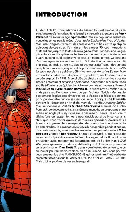 Spider-Man est confronté à un nouvel et terrible ennemi, le sanguinaire Morlun qui n'a pour seul but que de le tuer ! Cet énième adversaire est d'autant plus inquiétant que Morlun semble invulnérable et capable de détecter le Tisseur même lorsqu'il n'est pas en costume. C'est le début d'un affrontement qui va pousser Peter Parker dans ses derniers retranchements, et lui faire découvrir de nouvelles choses sur ses pouvoirs. Lorsque Joe Quesada devient rédacteur en chef de Marvel au début des années 2000, sa première tâche est de rendre sa superbe à Spider-Man, qui sort de quelques années difficiles d'un point de vue éditorial. Il confie la série à J. Michael Straczynski qui démarre sur les chapeaux de roue avec des sagas qui ont marqué durablement le personnage, d'autant que les dessins sont assurés par John Romita Jr, l'un des plus grands dessinateurs de la Maison des Idées.