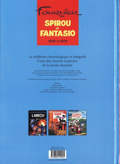 Ce volume réunit "L'Ankou", "Kodo le tyran" et "Des haricots partout", parus entre 1977 et 1980. Fournier succède à Franquin en 1969, et parvient à s'émanciper progressivement de l'influence du Maître. Il fait évoluer le personnage de Spirou, qu'il rend plus moderne en s'inspirant de l'actualité de l'époque (énergie nucléaire, trafic de drogue, etc.), ou en introduisant une dimension fantastique dans certaines aventures. Sans se départir du ton humoristique de la série, qu'il a même tendance à accentuer, il étoffe l'univers de Spirou et Fantasio avec des personnages pittoresques comme Itoh Kata ou Ororéa, que l'on retrouve dans "L'Ankou" en 1977. C'est d'ailleurs avec cet album, dont l'histoire se déroule dans sa chère Bretagne, sur fond de colloque de magiciens et de magouilles nucléaires, que commencent à se fissurer les relations de Fournier avec son éditeur. "Kodo le tyran" et "Des haricots partout", dont il campe l'intrigue dans un pays imaginaire, le Çatung, seront les dernières contributions de Fournier à la série Spirou et Fantasio.