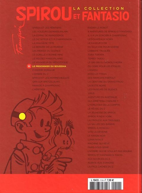 Les aventures de Spirou et Fantasio Le tome 14 Le prisonnier du bouddha Le comte de Champignac cache un de ses collègues scientifiques qui a fait une découverte capitale mais qui pourrait être utilisée à des fins militaires. Spirou et Fantasio vont avec l'aide du Marsupilami aller délivrer un troisième scientifiques prisonnier d'un des (...) Voir le commentaire
