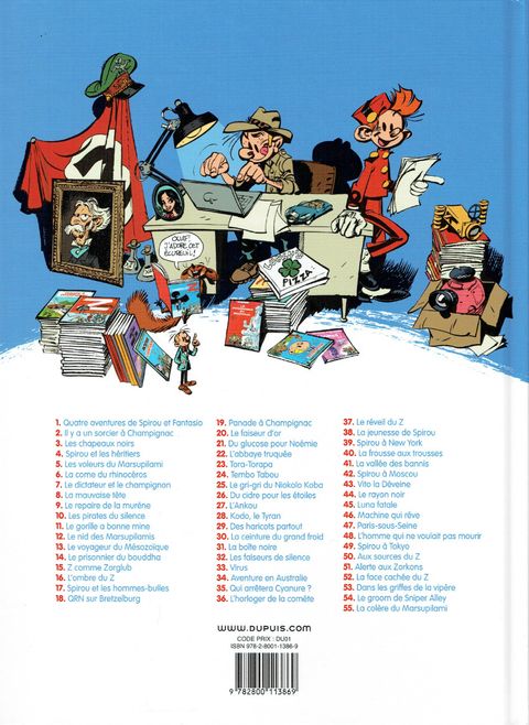 Les aventures de Spirou et Fantasio Le tome 37 Le réveil du Z Alors je ne vais pas me faire que des amis, mais pour moi c'est le vrai Spirou celui de Tome et Janry... Cet album est la suite directe de l'album précédent. Ou la descendance de Zorglub profite de l'invention de Champignac (...) Voir le commentaire