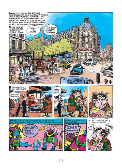 Aurélien, le neveu de Champignac, emmène Spirou et Fantasio dans le futur pour qu'ils affrontent Zorglub Jr.