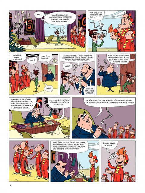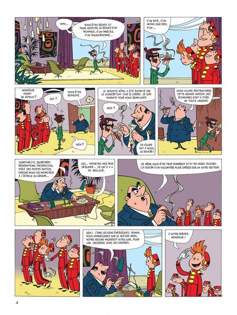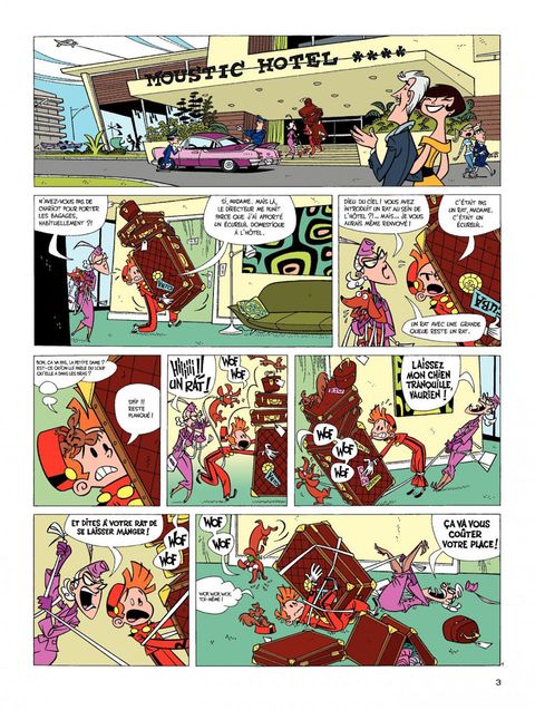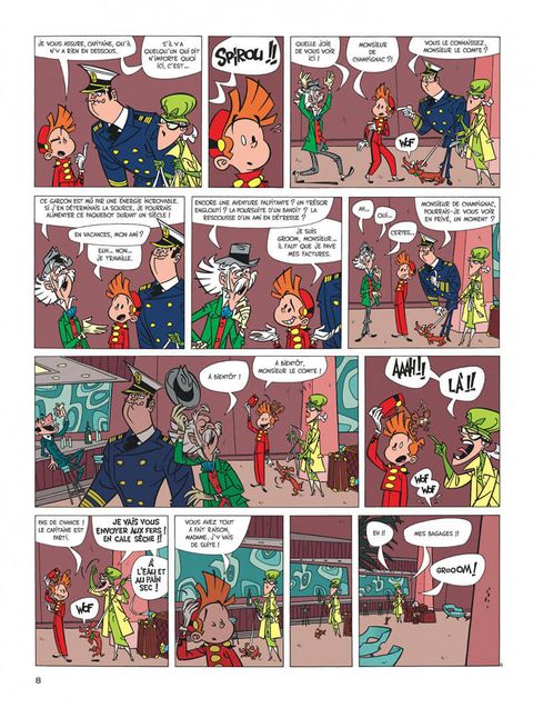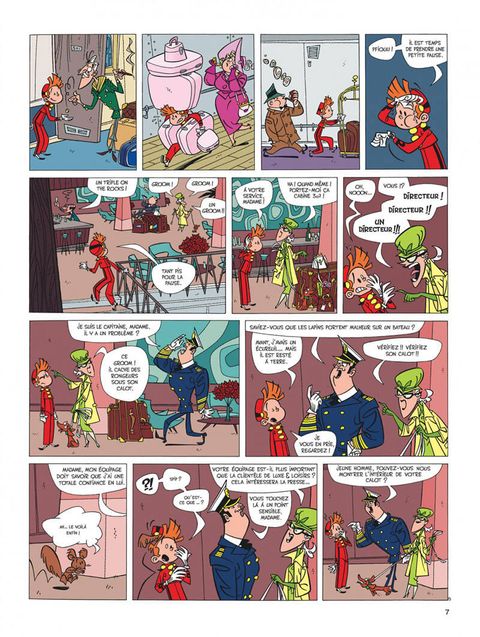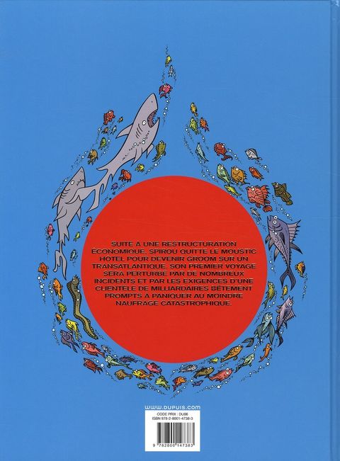 Suite à une restructuration économique, Spirou quitte le Moustic Hôtel pour devenir groom sur un transatlantique. Son premier (et dernier voyage) sera perturbé par la présence d'un écureuil désobéissant, d'un journaliste-photographe en mal de scoops et d'un vieux scientifique farfelu enquêtant sur un autre navire disparu corps et biens. Mais il n'y a pas que Spip, Fantasio et le comte de Champignac sur ce magnifique paquebot et notre héros aura fort à faire pour calmer une clientèle de milliardaires prompts à paniquer au moindre naufrage. "Panique en Atlantique", c'est les Marx Brothers qui prennent le Titanic dans une ambiance sixties ! Fabrice Parme et Lewis Trondheim, auteurs, par ailleurs, du "Roi catastrophe", nous emmènent dans une croisière délirante qui sombre très vite dans du pur burlesque comme on n'en avait pas encore vu dans cette collection de "one-shot" de Spirou.