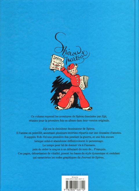 155 pages méconnues présentant un Spirou inattendu, 155 pages de plaisir. En 1940, Jijé reprend Spirou des mains de Rob-Vel, premier dessinateur de la série. Sous sa plume, Spirou trouve une nouvelle vie, gracieuse et fantaisiste à souhait. Les décennies passant, ces pages sont devenues mythiques, symboles de la naissance de la bande dessinée franco-belge. Cette édition les présente dans leur intégralité ? dans leur version initiale publiée dans Le journal de Spirou ? et restaurées avec soin.