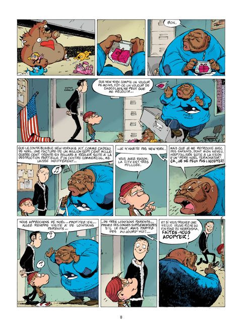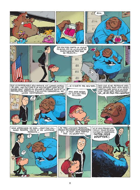 Mickey Spoon est petit, Donald White est grand. L'un teigneux, l'autre hautain... Spoon est fan de Clint Eastwood et collectionne les peluches Walt Disney. White est persuadé d'être un descendant des premiers américains arrivés aux States sur le Mayflower. Ils sont tous les deux flics, les seuls flics blancs d'un commissariat de noirs, ils font équipe, se détestent, et sont amoureux de la sculpturale reporter de BNN Courtney Balconi. Mais si l'amour les réunit dans l'adversité, il les divise sur le terrain, car ils n'ont de cesse de vouloir conquérir le coeur de la belle au mépris de toutes les enquêtes qui leur sont confiées. Ca flingue dans la bonne humeur à tous les étages ! Une série pleine de gags, de jeux de mots et de jolies filles, avec une bonne dose de second degré et un regard plus qu'ironique sur les USA ! Jean Léturgie et Yann au scénario, Simon Léturgie et Franck Isard au dessin font débarquer leurs deux héros aux Editions Vents d'Ouest pour le plus grand plaisir de tous !