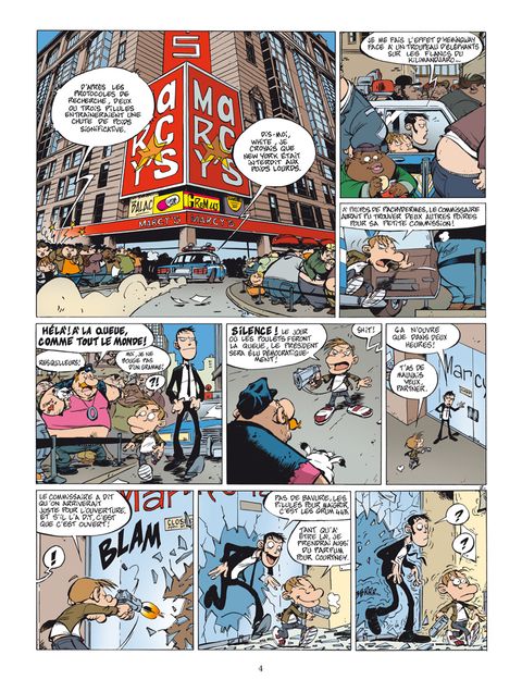 Mickey Spoon est petit, Donald White est grand. L'un teigneux, l'autre hautain... Spoon est fan de Clint Eastwood et collectionne les peluches Walt Disney. White est persuadé d'être un descendant des premiers américains arrivés aux States sur le Mayflower. Ils sont tous les deux flics, les seuls flics blancs d'un commissariat de noirs, ils font équipe, se détestent, et sont amoureux de la sculpturale reporter de BNN Courtney Balconi. Mais si l'amour les réunit dans l'adversité, il les divise sur le terrain, car ils n'ont de cesse de vouloir conquérir le coeur de la belle au mépris de toutes les enquêtes qui leur sont confiées. Ca flingue dans la bonne humeur à tous les étages ! Une série pleine de gags, de jeux de mots et de jolies filles, avec une bonne dose de second degré et un regard plus qu'ironique sur les USA ! Jean Léturgie et Yann au scénario, Simon Léturgie et Franck Isard au dessin font débarquer leurs deux héros aux Editions Vents d'Ouest pour le plus grand plaisir de tous !