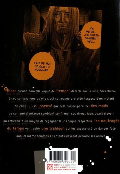 Alors qu'une nouvelle vague de ""temps"" déferle sur la ville, Sû affirme à ses compagnons qu'elle s'est retrouvée projetée l'espace d'un instant en 2008. Aussi insensé que cela puisse paraître, des mails de son ami d'enfance semblent confirmer ses dires... Mais avant d'avoir pu réfléchir à un moyen de regagner leur époque respective, les naufragés du temps vont subir une trahison qui les exposera à un danger face auquel même femmes et enfants devront prendre les armes.