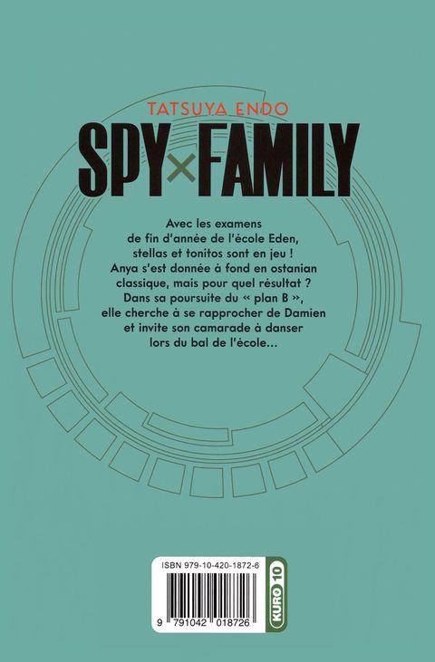 Sauvez le monde avec l'élite des agents (très) spéciaux : la famille Forger ! Une comédie d'espionnage pétillante ! Avec les examens de fin d'année de l'école Eden, stellas et tonitos sont en jeu ! Anya s'est donnée à fond en ostanian classique, mais pour quel résultat ? Dans sa poursuite du " plan B ", elle cherche à se rapprocher de Damien et invite son camarade à danser lors du bal de l'école...