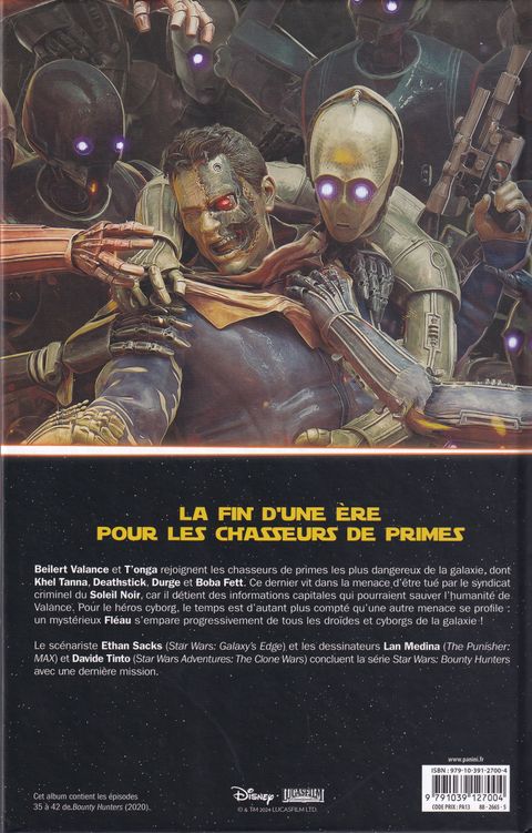 Au lendemain de leur combat contre l'Escouade Inferno, Valance et T'onga sont rejoints par les chasseurs de primes les plus dangereux de la galaxie dont... Boba Fett ?! L'impitoyable mercenaire a pourtant été condamné à mort, sauf que la nouvelle équipe n'est pas tout à fait d'accord avec la sentence ! Lors de Dark Droids, les chasseurs de primes font face à une embuscade mortelle de droïdes, et un Valance corrompu pourrait être leur plus gros problème ! Les ennemis acharnés doivent devenir des alliés désespérés, et leur dernier espoir pourrait bien se trouver entre les mains les plus improbables ! La fin d'une époque pour les chasseurs de primes ! Avec ce dernier tome Ethan Sacks met un terme aux aventures de Beilert Valance : provisoirement ou pas ? Ça dépendra du public !