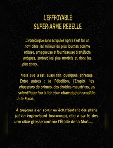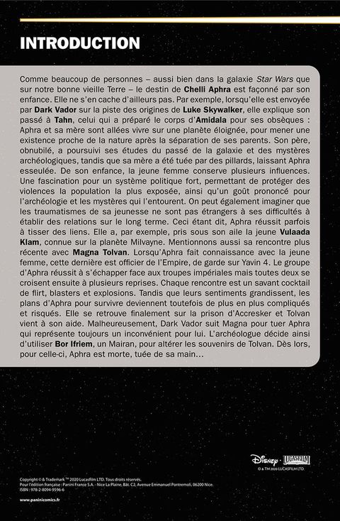 Le Docteur Aphra a surmonté bien des périls (souvent de justesse) pour arriver à ce sixième tome ! Le plus malin serait de se faire discret pour quelque temps, n'est-ce pas ? C'est mal connaître l'anti-héroïne, archéologue de l'extrême, toujours prête à piller d'anciens temples à la recherche d'armes surpuissantes. De nouveau, elle va attirer l'attention de l'Empire, des rebelles... et des chasseurs de prime de la galaxie Star Wars ! Chelli Aphra demeure la très bonne surprise de l'univers Star Wars en comics, le premier personnage créé pour les adaptations Marvel à prendre son essor et à avoir autant de notoriété que les personnages des films ! Il est encore temps de découvrir ses aventures avec ce nouveau départ.