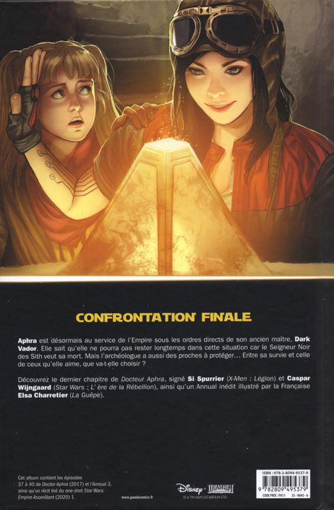 Clap de fin pour le Docteur Aphra ! Ce tome est la promesse d'un final flamboyant puisque l'anti héroïne se retrouve confrontée à son ancien patron : Dark Vador ! Le brave Docteur va devoir affronter son destin et retrouver son père ! Pure création de l'univers Star Wars en comics, le Docteur Aphra a remporté un tel succès que Marvel lui a offert sa propre série ! Une réussite pour un personnage qui n'est jamais apparu dans les films.