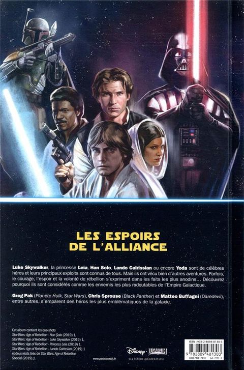 Star Wars : L'Ascension de Skywalker, le dernier film de la saga Skywalker arrive dans les salles de cinéma le 18 décembre. Le même mois, Panini Comics publiera un tome consacré aux vilains de la même époque (Dark Vador, Boba Fett, etc.). Retrouvez les aventures d'Han et Chewbacca, Lando, Luke Skywalker et la princesse Leia dans ces one-shots écrits par Greg Pak (Weapon H) et illustrés par Chris Sprouse (Black Panther).