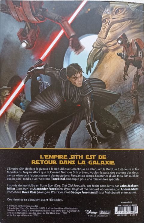 L'Empire Sith est de retour dans la galaxie ! Déterminés à écraser la République qui les a envoyés en exil, les Sith lancent une attaque sur la Bordure Extérieure de la galaxie, avec pour cible les Mondes du Noyau, le coeur de l'unité galactique. Le Conseil Noir des Sith prétend vouloir la paix, mais les deux camps ont des espions qui pourraient renverser le cours de la guerre ! Les séries Star Wars de la période 1991-2014 (publiés aux US par Dark Horse) sont proposées dans d'épais volumes d'environ 450 pages qui s'intéressent à différentes époques de la Galaxie. Ce quatrième tome s'intéresse plus particulièrement aux ennemis des Jedi, les Sith.