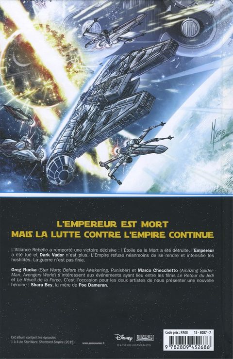 Après vingt ans de terreur, le règne de l'Empereur s'est achevé. Mais, alors que l'Alliance Rebelle célèbre la chute de l'Empire Galactique, ils ne se rendent pas encore compte que Palpatine avait un coup d'avance : les ruines de l'Empire vont s’avérer être un piège redoutable pour les rebelles. Découvrez le récit qui pave la voie du Retour du Jedi jusqu'au Réveil de la Force. (Contient les épisodes US Star Wars : Shattered Empire 1-4, inédits)