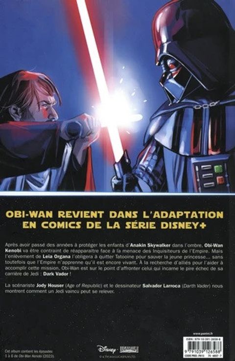 L'Ordre 66 a décimé les Jedi. Après avoir laissé Anakin Skywalker pour mort, Obi-Wan Kenobi a promis à Padmé Amidala de protéger leurs enfants. La jeune Leia a été confiée au Sénateur Ordana d'Alderaan tandis que Kenobi protège le jeune Luke sur Tatooine. Mais lorsque Leia est capturée, Obi-Wan devient alors son seul espoir... Retrouvez la série Obi-Wan Kenobi en comics ! Après le succès de l'adaptation de The Mandalorian en comics, les fans de Star Wars vont pouvoir découvrir une autre série Disney+ en bande dessinée, ici en un seul tome.