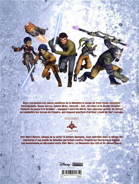 Nous retrouvons nos héros membres de la Rébellion le temps de trois récits complets. Hera Syndulla, Kanan Jarrus, Sabine Wren, Garazeb « Zed » Orrelios et le droïde Chopper, flanqués du jeune Ezra Bridger voyagent à bord du Ghost, leur vaisseau spatial. Les forces de l'Empire, Dark Vador en tête, risquent pourtant bien cette fois-ci de venir à bout de leur courage.