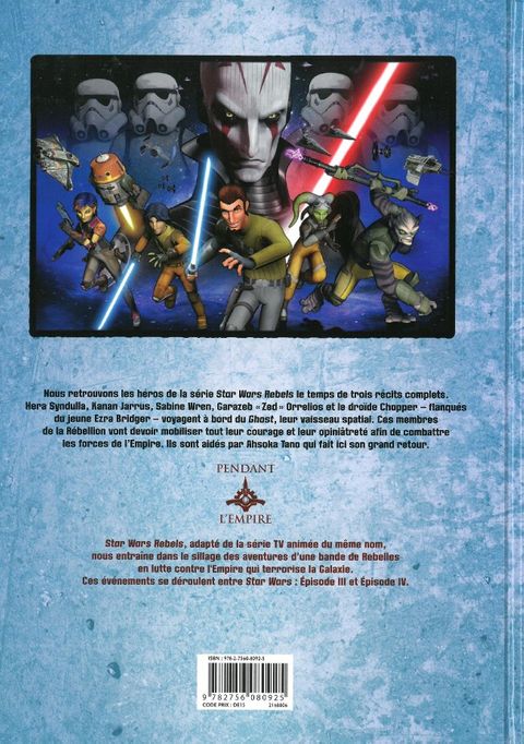 Star Wars Rebels adapté de la série animée éponyme, raconte les aventures d'un ado, futur Jedi, qui se joint à une bande de rebelles pour lutter contre l'Empire Galactique qui terrorise la Galaxie. Nous retrouvons les héros le temps de trois récits complets. Hera Syndulla, Kanan Jarrus, Sabine Wren, Garazeb « Zed » Orrelios et le droïde Chopper - flanqués du jeune Ezra Bridger - voyagent à bord du Ghost, leur vaisseau spatial. Ces membres de la Rébellion vont devoir mobiliser tout leur courage et leur opiniâtreté afin de combattre les forces de l'Empire, à commencer par le terrible Inquisiteur.