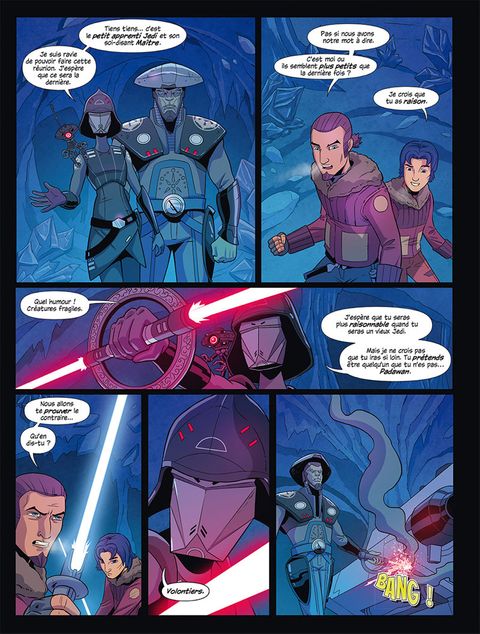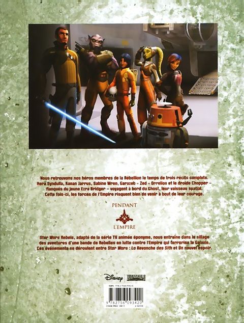 Star Wars Rebels adapté de la série animée éponyme, raconte les aventures d'un ado, futur Jedi, qui se joint à une bande de rebelles pour lutter contre l'Empire Galactique qui terrorise la Galaxie. Nous retrouvons nos héros membres de la Rébellion le temps de trois récits complets. Hera Syndulla, Kanan Jarrus, Sabine Wren, Garazeb « Zed » Orrelios et le droïde Chopper - flanqués du jeune Ezra Bridger - voyagent à bord du Ghost, leur vaisseau spatial. Les forces de l'Empire risquent pourtant bien cette fois-ci de venir à bout de leur courage.