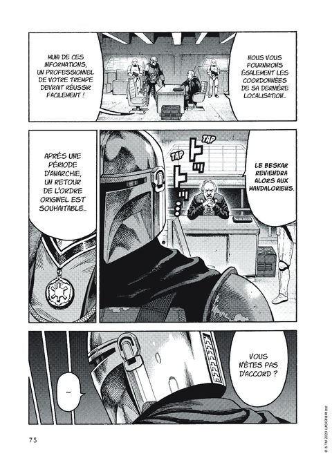<div style="text-align: justify;">Il y a bien longtemps, dans une galaxie lointaine, très lointaine... ...se déroule l’histoire d’un loup solitaire et d’un enfant aux pouvoirs étranges. Cinq ans après la mort de Dark Vador, la paix n’est pas encore revenue car les survivants de l’Empire Galactique continuent de fomenter des troubles, dans l’ombre... Après la capture mouvementée d’un Mythrol sur une planète glacée, Mando, chasseur de primes tenant son surnom de ses origines mandaloriennes, cherche une nouvelle mission qui paye bien. Greef Karga, un agent de sa Guilde, l’oriente vers un mystérieux Client qui le charge de lui ramener un Objectif... mort ou vif. Mando ne sait pas encore que cette quête va bouleverser son existence !</div>