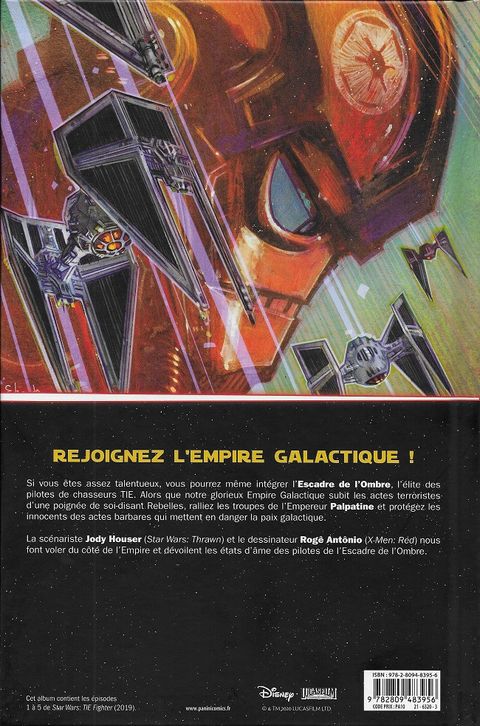 Cet album signé Jody Houser (Rogue One: A Star Wars Story) est en lien avec le roman Star Wars: Alphabet Squadron (où l'on suit un escadron de pilotes rebelles), également publié en France, par Pocket, en février. La guerre entre l'Empire Galactique et l'Alliance Rebelle fait rage. L'armée de l'Empereur a besoin d'une force d'élite capable de rendre coup pour coup aux X-wings rebelles. Un escadron rassemblant les meilleurs pilotes de TIE Fighters est alors formé, mais les fortes personnalités des membres recrutés vont créer des problèmes inattendus...