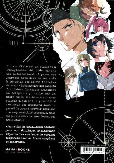 Rintaro Okabe est un étudiant à l'imagination débridée. Savant fou autoproclamé, il passe ses journées avec deux de ses amis à inventer des objets farfelus dans son "Laboratoire des gadgets futuristes". Lorsqu'ils branchent un téléphone portable sur un micro-ondes, ils découvrent avec stupeur qu'ils ont la possibilité d'envoyer des messages dans le passé ! Ce grand pouvoir implique une responsabilité colossale, mais qui peut prédire ce qu'en feront ces trois otaku ? Adaptation du visual novel acclamé pour son écriture, Steins;Gate réjouira les amateurs de voyages temporels avec sa trame complexe et cohérente.