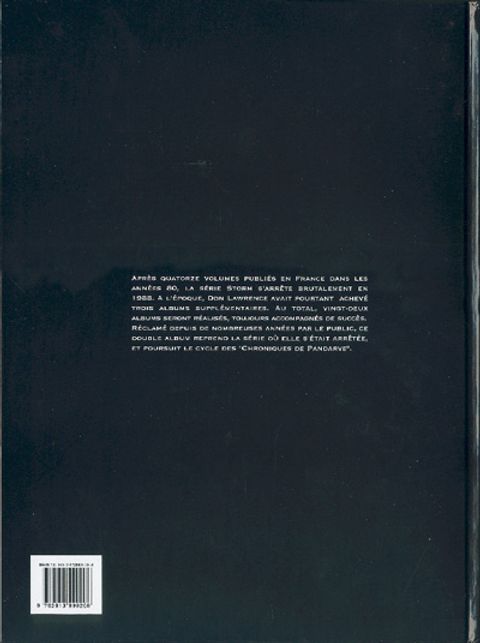 Après quatorze volumes publiés en France dans les années 80, la série Storm s'arrête brutalement en 1988. A l'époque, Don Lawrence avait pourtant achevé trois albums supplémentaires. Au total, vingt-deux albums seront réalisés, toujours accompagnés de succès. Réclamé depuis de nombreuses années par le public, ce double album reprend la série où elle s'était arrêtée, et poursuit le cycle des "Chroniques de Pandarve".