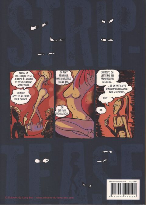 Camille, une jeune architecte, rentre chez elle à l'improviste et surprend son copain au lit avec une jolie blonde. Blessée, elle vire immédiatement l'indélicat de chez elle et décide de faire le bilan de sa vie. Une remise en question qui la conduit à se lancer un étrange défi : celui de devenir danseuse dans une boîte de strip-tease. Un monde dont Camille ignore tout et qu'elle découvre progressivement avec l'aide de ses nouvelles collègues toutes plus déjantées les unes que les autres. Avec beaucoup d'humour et de justesse, Emma Subiaco décrit un monde interlope dans lequel les « mecs » n'ont pas vraiment le beau rôle...