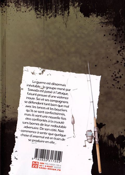La guerre est désormais inévitable : le groupe mené par Sawada est passé à l'attaque, faisant preuve d'une violence sans pitié. Sei et ses compagnons se défendent tant bien que mal avec les lances et les boucliers qu'ils se sont confectionnés, mais ils vont une nouvelle fois être confrontés à la cruauté sans bornes de leur redoutable adversaire. De son côté, Nao commence à sentir que quelque chose d'anormal est en train de se produire en elle...