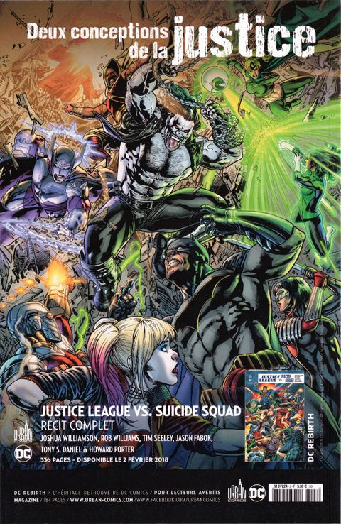 QUI A TIRÉ SUR AMANDA WALLER ? Amanda Waller vient d’être abattue à la Nouvelle-Orléans. L’enquête interne s’ouvre, mais la méfiance s’installe dans les rangs de la Suicide Squad, chacun soupçonnant ses équipiers d’avoir pressé la détente. Par Rob WILLIAMS, John ROMITA Jr. et Eddy BARROWS. Le nouveau groupe de Batman, composé en partie d’anciens repris de justice, est opérationnel. Mais cette Ligue de Justice sera-t-elle de taille face aux Extrémistes ? Harley Quinn décide de mettre un terme à son idylle avec le Joker, en employant la manière forte, par Jimmy PALMIOTTI, Amanda CONNER, John TIMMS et Khary EVANS. À peine évadé de prison, le mercenaire Deathstroke trouve sur son chemin un adversaire inattendu, Raptor, l’ennemi de Nightwing, vêtu de l’une des combinaisons Ikon de Slade Wilson. Le combat s’annonce musclé, par Christopher PRIEST et Joe BENNETT. Contient les épisodes US : - SUICIDE SQUAD #12 et #13 - JUSTICE LEAGUE OF AMERICA #1 et #2 - HARLEY QUINN #13 et #14 - DEATHSTROKE #12 et #13.