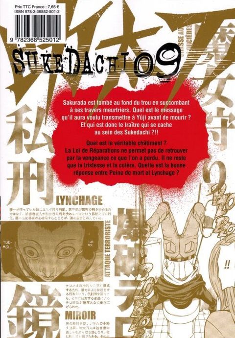 Sakurada est tombé au fond du trou en succombant à ses travers meurtriers. Quel est le message qu'il aura voulu transmettre à Yûji avant de mourir ? Et qui est donc le traître qui se cache au sein des Sukedachi ?!! Quel est le véritable châtiment ? La Loi de Réparations ne permet pas de retrouver par la vengeance, ce que l'on a perdu. Il ne reste que la tristesse et la colère. Quelle est la bonne réponse entre Peine de mort et Lynchage ?