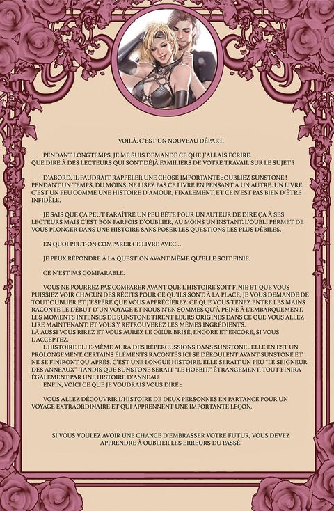 Anne et Alan vont devoir répondre à de nombreuses questions dont la plus importante de toutes : comment se faire confiance quand on a eut le cœur brisé ? Stjepan Sejic ouvre un nouveau volet de Sunstone. L’auteur croate poursuit son exploration des relations amoureuses dans ce second volet de Sunstone, qui peut être lu indépendamment des autres tomes de la saga.