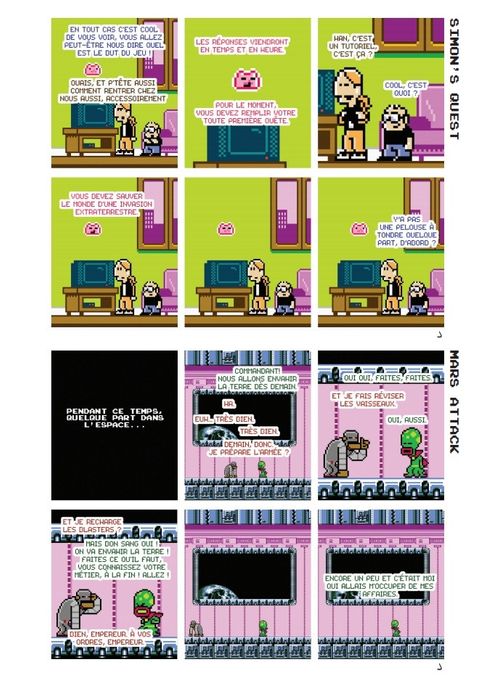 Et si vous étiez aspiré littéralement dans un vieux jeu vidéo ? A quoi ressemblerait alors la vie en pixels ? Comment contourner les règles absurdes des jeux vidéo et surtout comment en sortir ? C'est ce que vont découvrir quatre personnages très différents, aussi bien des geeks confirmés que des novices en la matière. Drôle et parodique, Super Basse Def s'adresse aux geeks ! - 64 pages truffées de séquences surréalistes et humoristiques, mais aussi de clins d'oeil à la culture du rétrogaming, notamment de références à la console Super Nintendo et à sa ludothèque. - Incluses 14 pages constituées de divers bonus : making of, détournements, parodies et bien d'autres surprises... - Il ne s'agit pas de la suite de la BD Basse Def (sorti chez Omaké Books en 2013). Cela dit, les fans retrouveront le même humour et un univers similaire, le tout servi par un style graphique étonnant à base de pixel art.