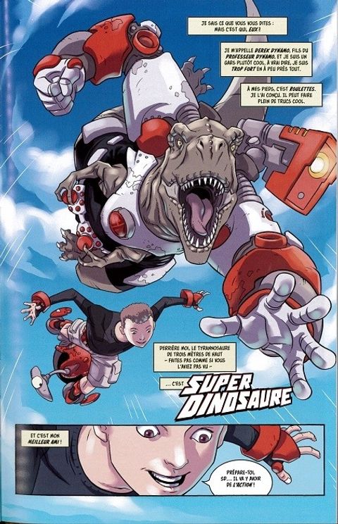 Derek a un meilleur ami, prénommé Dino, et ensemble ils adorent jouer aux jeux vidéo. Jusque-là, tout est normal. Sauf que Dino est un dinosaure énorme, qui parle et porte une armure bardée de gadgets. Alors, quand le maléfique Max Maximus décide de dérober le Dynore, une surpuissante source d'énergie, les deux amis se lancent dans l'aventure... Et rien ne pourra arrêter Derek Dynamo et Super Dino !