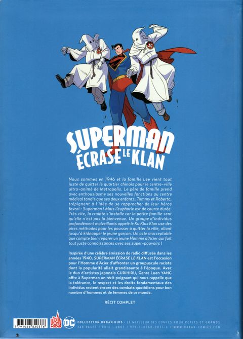 🧔chronique complète : https://www.mtebc.fr/superman-ecrase-le-klan-yang-gurihiru/ 📚1946 En emménageant à Métropolis, la famille Lee n'imaginait pas faire face au Klu Klux Klan. Pourtant, la ville de Superman pensait être au dessus de ces actes de pur racisme. Et l'Homme d'acier, qui lui même tente de se découvrir, compte bien mettre un terme aux (...) Voir le commentaire
