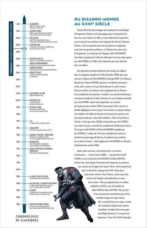 3 parties pour ce tome : ——— La partie « Bizarro » par Johns Bizarro a kidnappé John Kent pour l’emmener sur son monde ; Superman va aller à sa rescousse mais il est complètement dépassé dans le Bizarro-Monde… Un épisode à la fois fun et touchant : le côté inversé des bizarros est toujours assez (...) Voir le commentaire